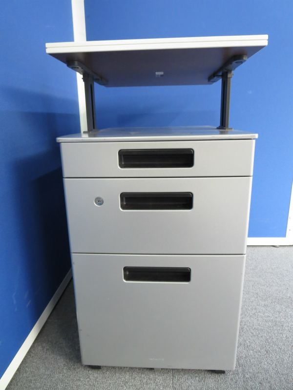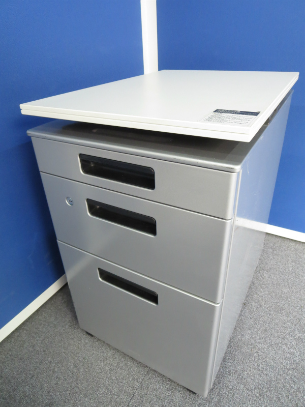 【上下昇降天板付き!】■コクヨ製 3段ワゴン【シルバー色】■【★中古市場では非常に珍しい仕様!】- 川崎店