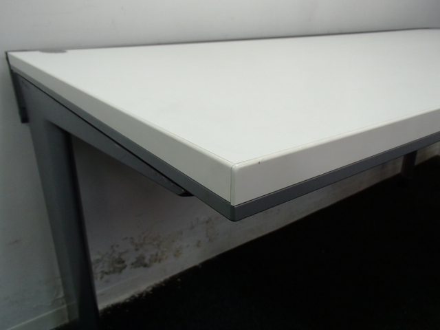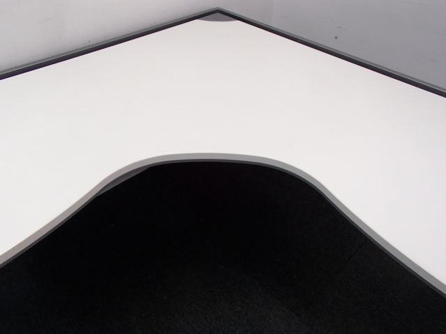 低メラニン加工を施した天板で、幅1600mmのワイドなL字型PCデスクです。