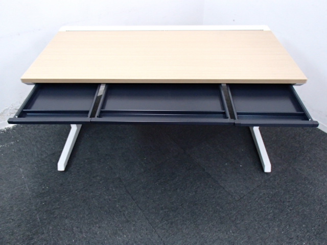 【在庫入替セール品】【ゆとりのあるワークスペースで作業効率アップ!使いやすさを追究したデザイン!】■イトーキ(ITOKI)製 CZRシリーズ 平デスク W1400×D700×H720mm 引き出し付 ■天板:木目ナチュラル/脚:L字ホワイト 【弊社使用欄:A01031516】