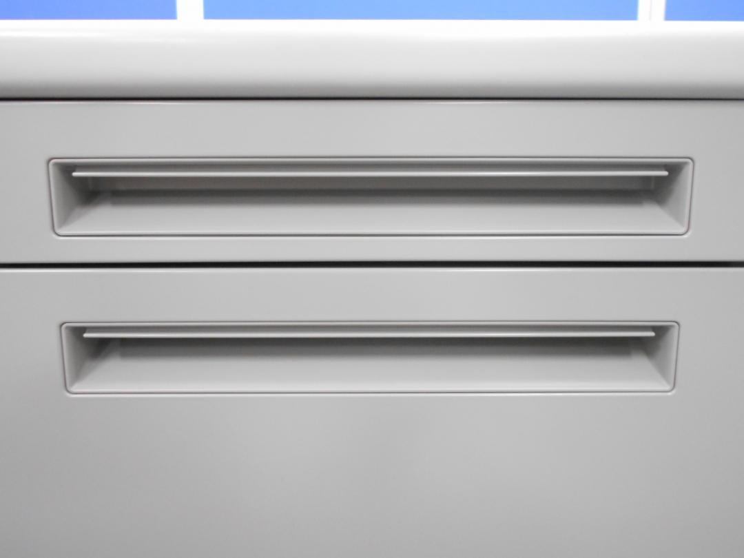 - シンプルながらも使いやすい工夫があります。ロックは、一度の施錠ですべての引出しの鍵がかかるオールロック機構。