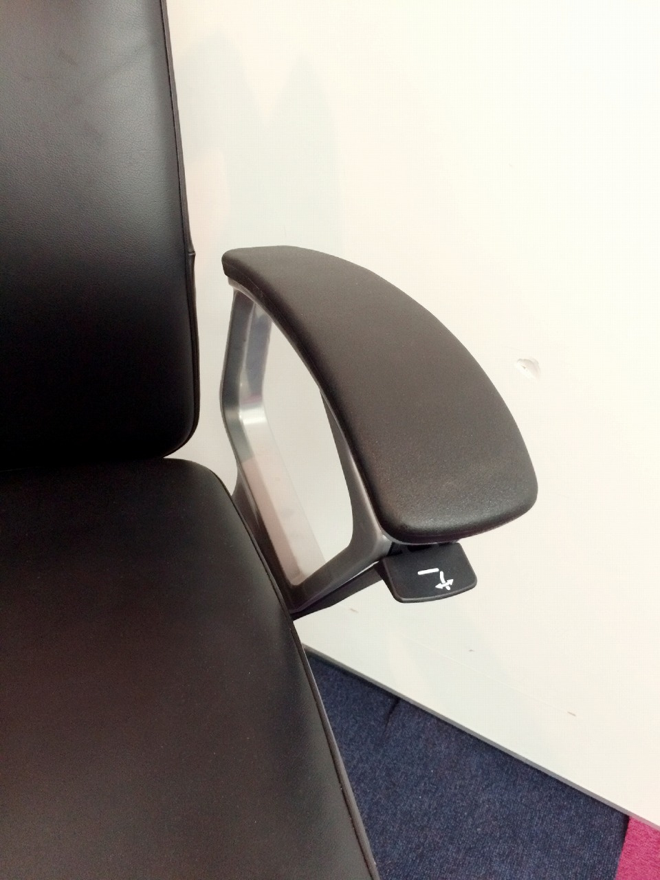 ※ひじ掛け部分に使用感ありのため、特価!【オカムラの最上級モデル!高級感と機能性を融合させたチェア!】■ハイバック 肘付き 背・座クロス張地(スエード調) 固定肘 ※サイド剥がれ有り ランバーサポート付き ブラック/オカムラ/デューク
