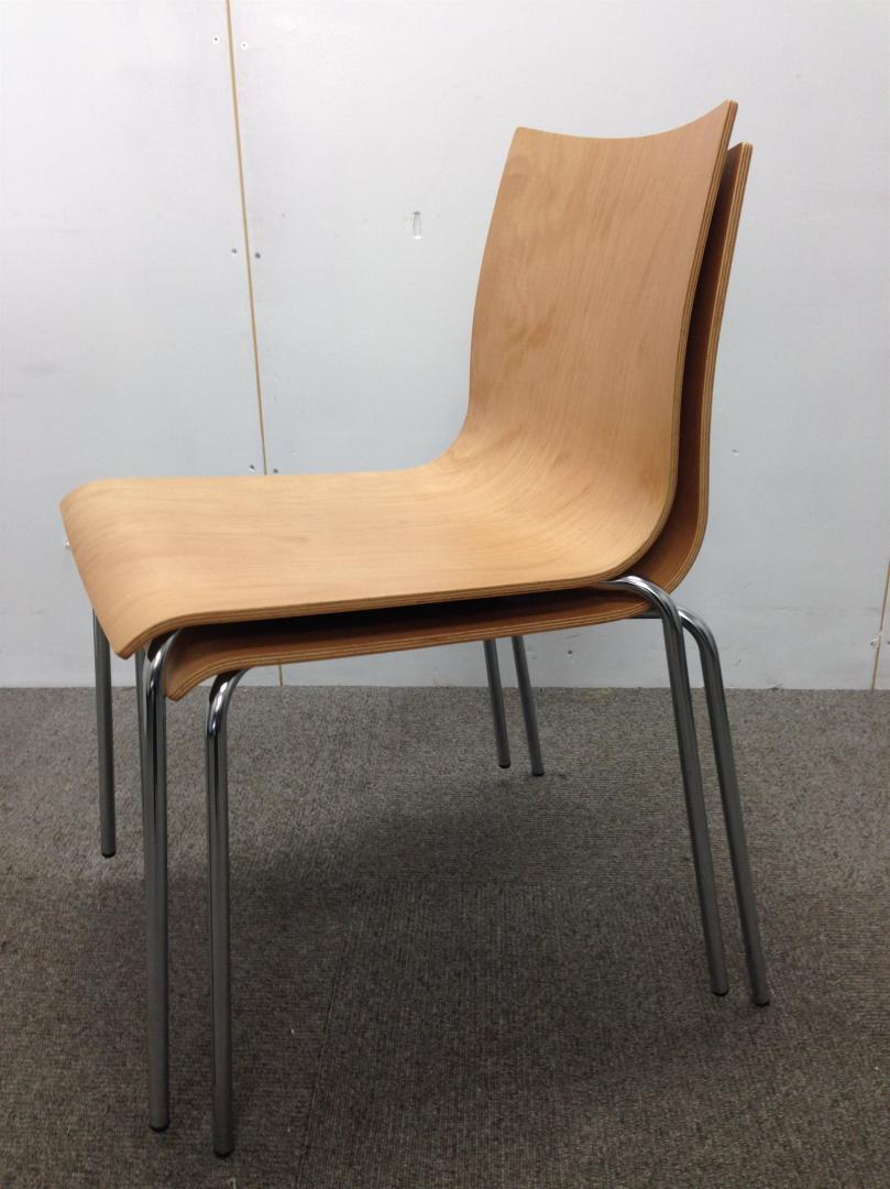 【2脚セット】オシャレな木目調スタッキングチェア|内田洋行製- 豊中・尼崎店
