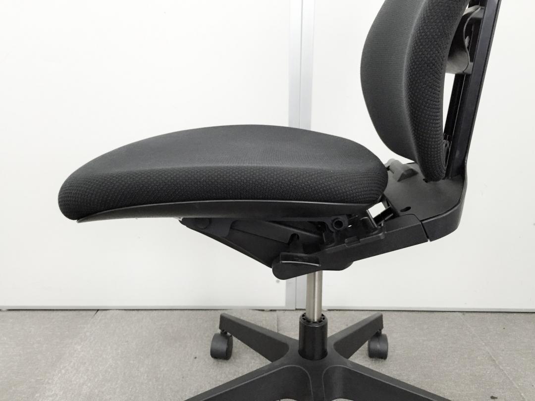 例えば、座面は、イトーキ独自の"ベンディングシート"という機構により、クッション、インターシェル、空洞という三層構造になっています。 この真ん中に挟まっているインナーシェルが、着座時の姿勢に合わせて体重を分散してくれるので、どんな姿勢でも体になじみ、疲労を軽減してくれます。 さらに、座面は前後に4センチほど奥行きを調整でき、前傾姿勢で座りたい、深く腰掛けたい、膝裏を圧迫されたくないなど、個人の好みに合った快適さにカスタマイズが可能となっています。