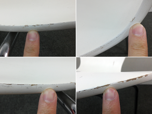 - かなり強い濃い黄ばみ・変色が商品全体にある。(例、座面・背もたれ、脚部等にある。)