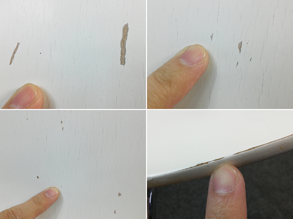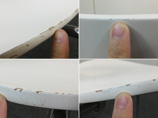 - 目立つ箇所あり傷・破れ・ほつれ・へたり・しわが多数または深い傷・破れ・ほつれ・へたり・しわが一部ある。※座面・背もたれ、シェル、脚部等にある。