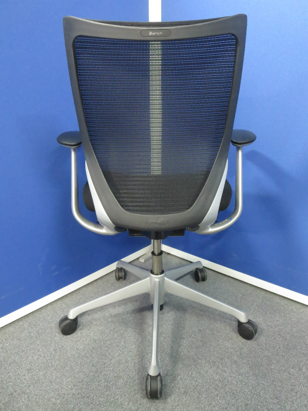 【国産メッシュチェアの代表格!オフィスの執務室、会議室におすすめ!】■オカムラ(okamura)製 バロン(Baron)チェア 肘付 ローバック 背面メッシュ ■固定肘 ■ブラック×ホワイトシェル【IB】