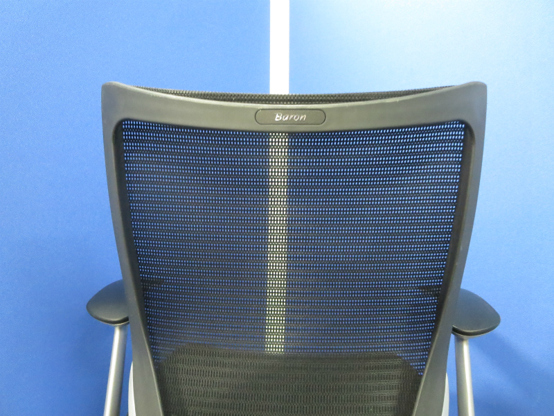 【国産メッシュチェアの代表格!オフィスの執務室、会議室におすすめ!】■オカムラ(okamura)製 バロン(Baron)チェア 肘付 ローバック 背面メッシュ ■固定肘 ■ブラック×ホワイトシェル