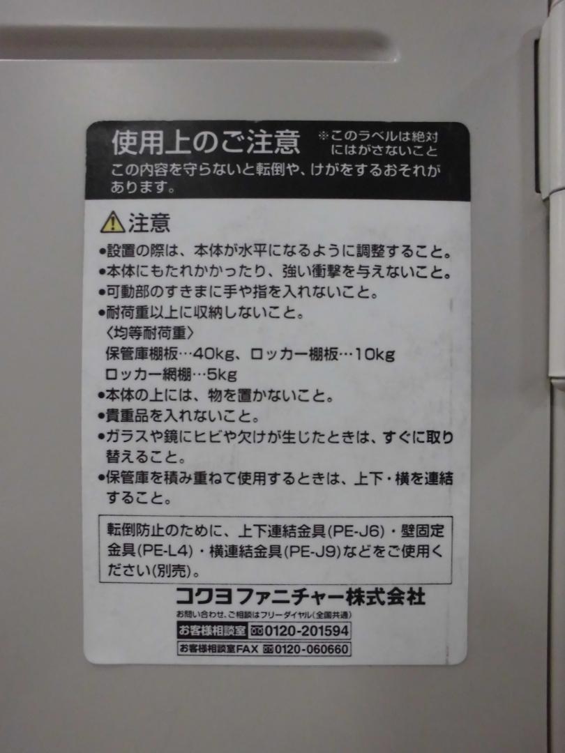 国産メーカーであるコクヨ製のスチールロッカーですので