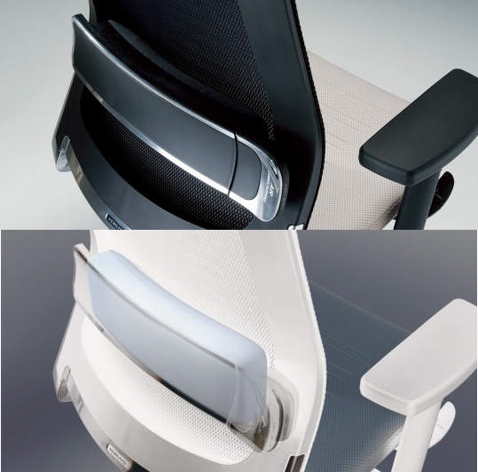 - 自由に変形し、力を分散させながら反発する空気の特性によって腰をサポート。ランバー部の前後幅は0~40mm、上下幅は100mmの調整が可能で、個人個人の異なる背骨形状にフィットします。