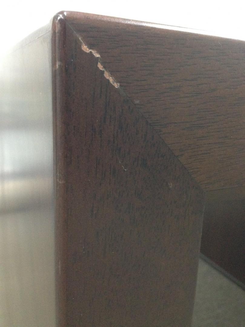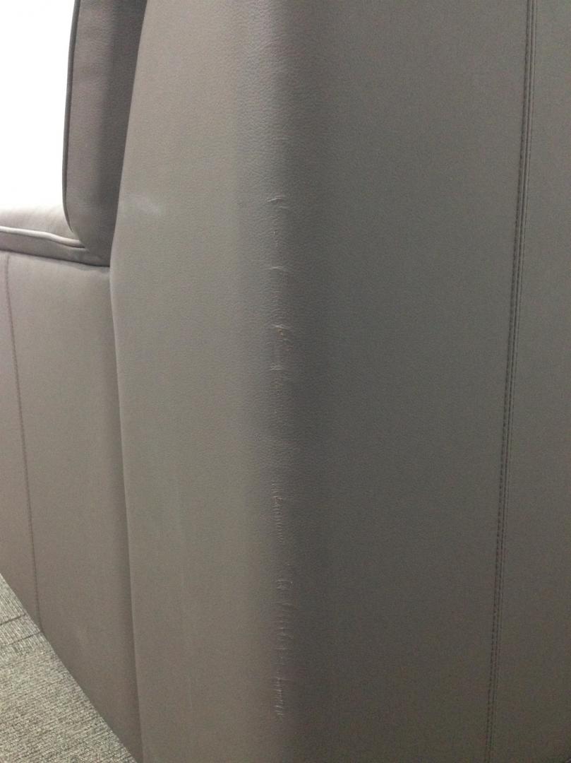 - あり黄ばみ・変色が広い範囲にうっすらある、または濃い黄ばみ・変色が一部ある。(例:三人用ソファ、二人用ソファ、一人用ソファの場合、背もたれ、肘かけ、座面等、 センターテーブルの場合、天板、脚にある。)