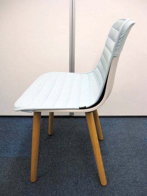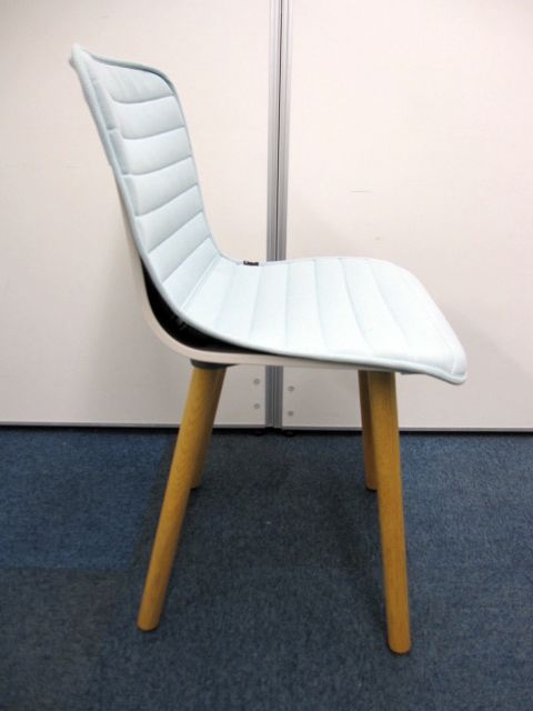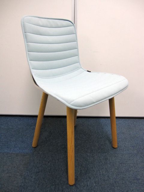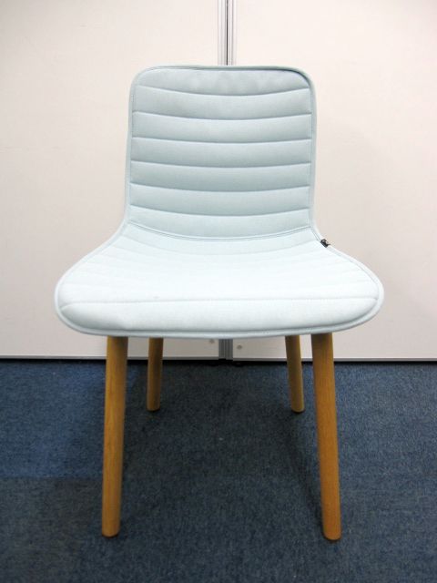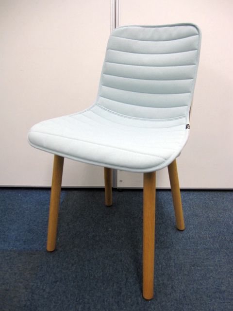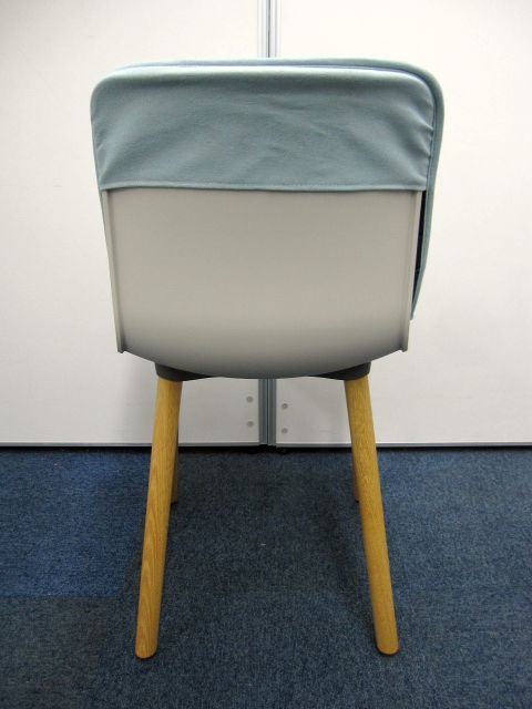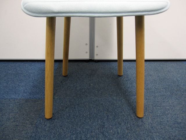 薄いグリーンーのシートカバー付き、脚部が木製のオシャレなミーティング(ダイニング)チェア- 品川・三田店