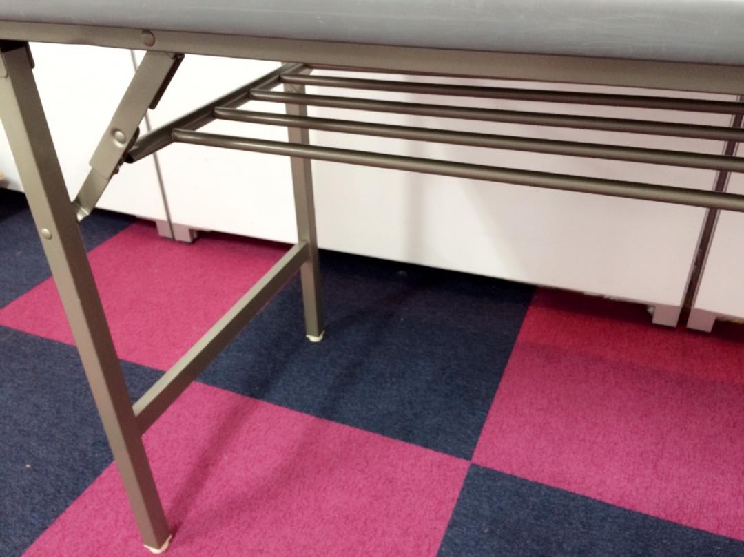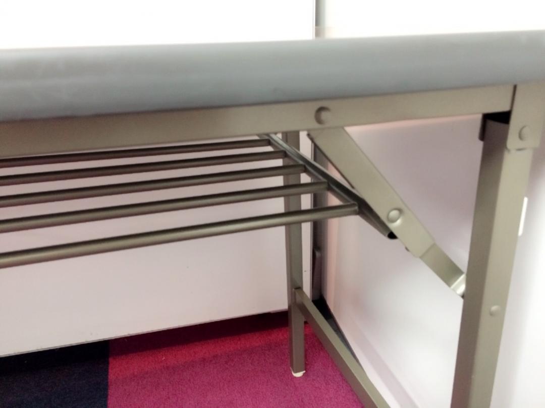 - 一部不具合あり天板歪み、アジャスター無し、キャスター使用不可ようなそのテーブルの本来の効用を果たすための機能以外の一部が使用不可な状態。(例、キャスターロッ ク機能使用不可、棚板無し等がある。)