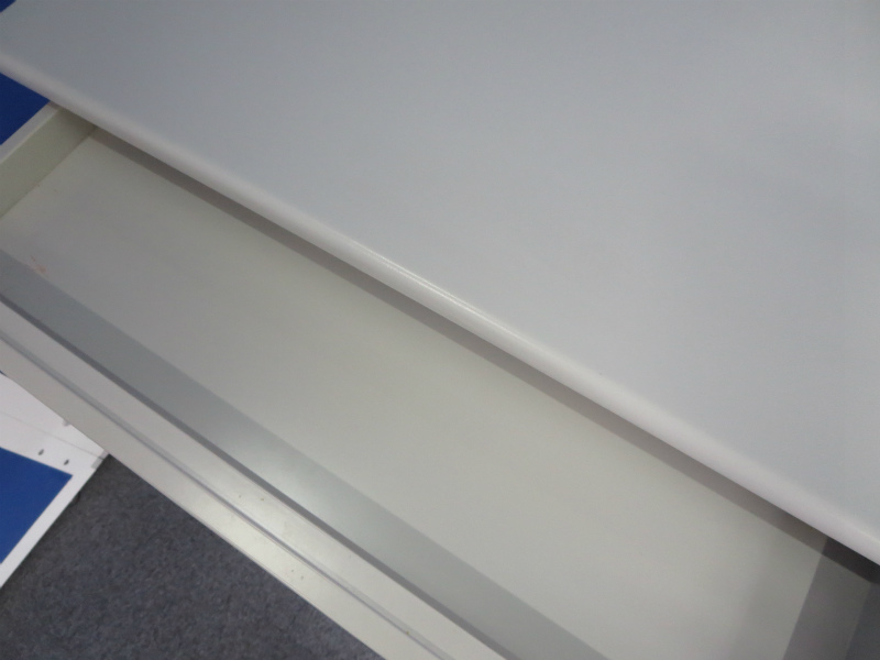広々とした倉庫スペースに豊富な在庫がございます。オフィス家具が中古で一式そろいます!