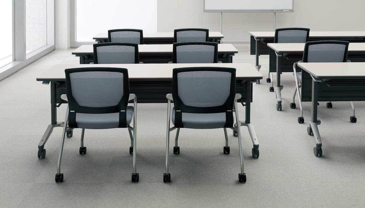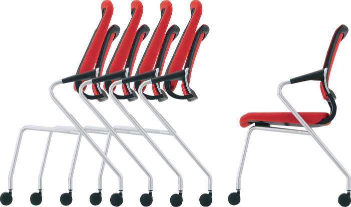 座面を跳ね上げての水平スタッキングが可能になっております。