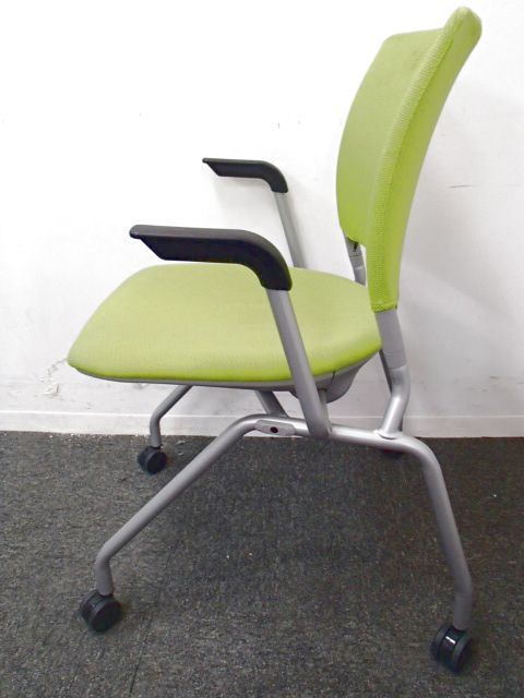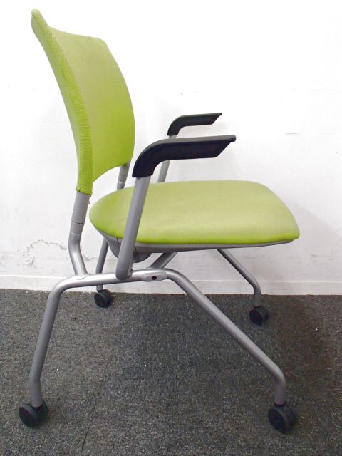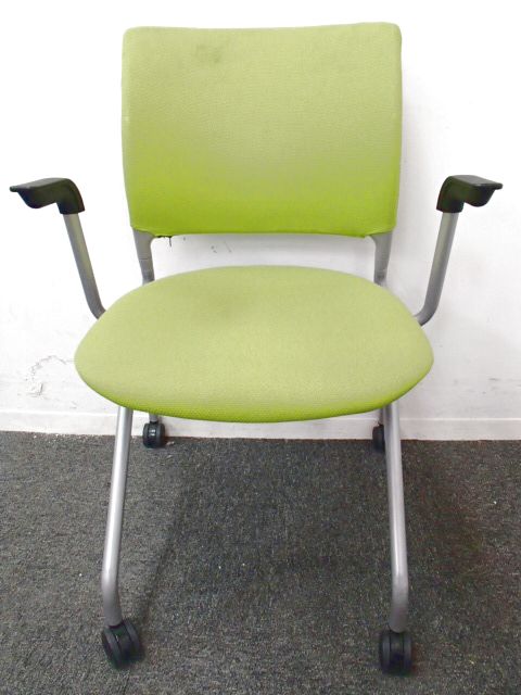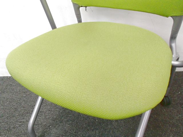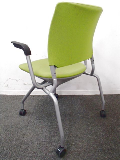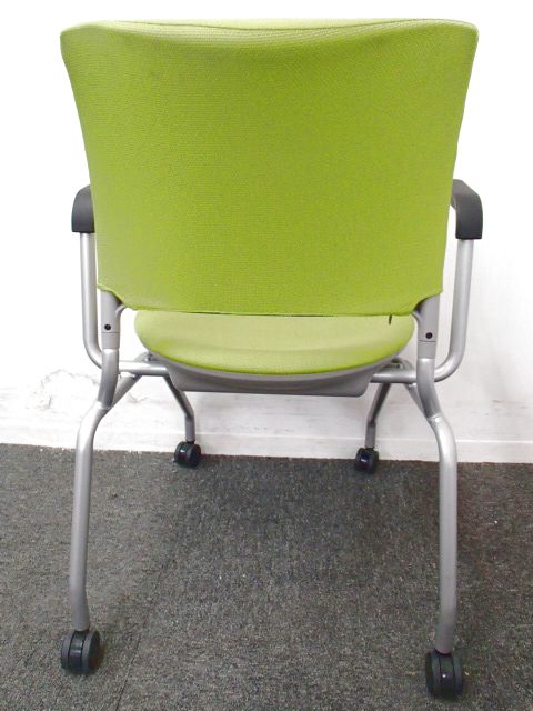 【在庫入替の為お安く!】肘付き会議用チェア|ネスティングチェア|鮮やかライトグリーン色- 大阪・堺店