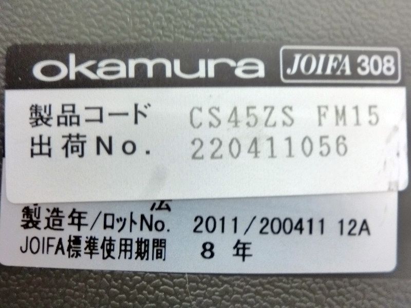 【中古】 SXチェア CS45ZS FM15 オカムラ/okamura 肘付ハイバックチェア 165229
