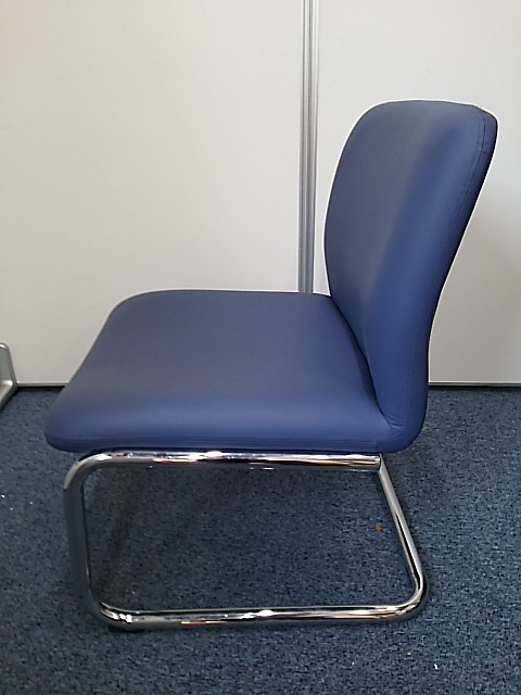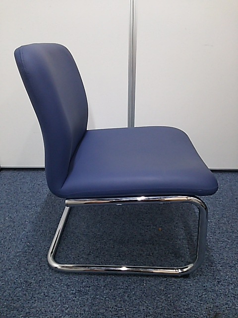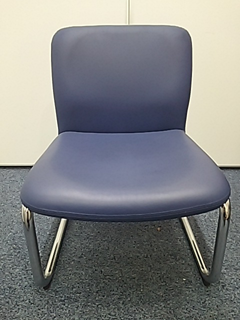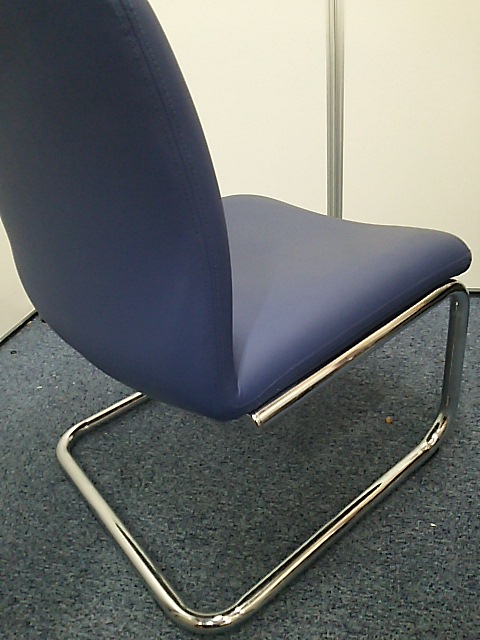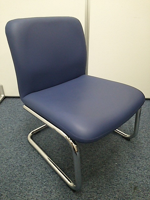 【4脚入荷しました!】かっこいいブルーのミーティングチェア!休憩室にも!ビニール地なので汚れが付きにくい 4脚まとめてどうぞ 別途センターテーブルご提案します。- 名古屋本店