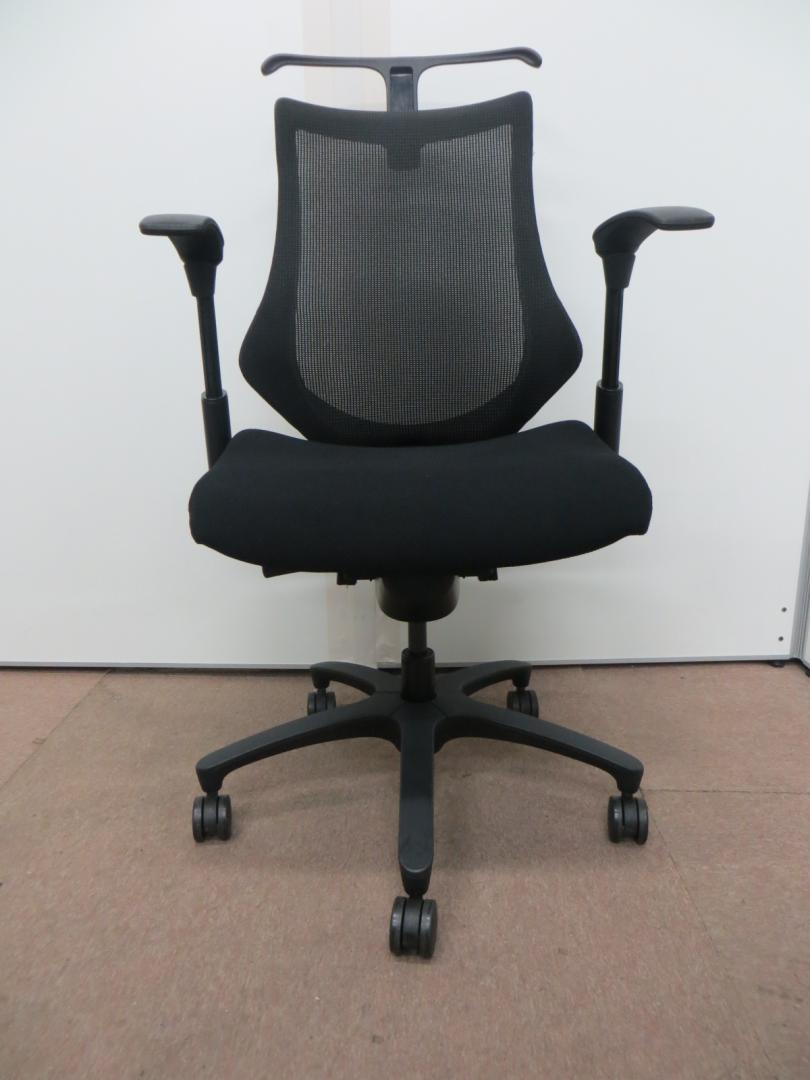 【三次元フォルムが腰にフィット!】希少なエラストマータイプ! ■イトーキ製 エフチェア 肘付 ブラック ハイバック ■姿勢の変化にフレキシブルに対応!