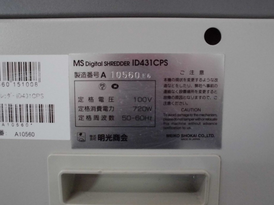 【中古】 MS-ID431CPS 明光商会 シュレッダー 165331