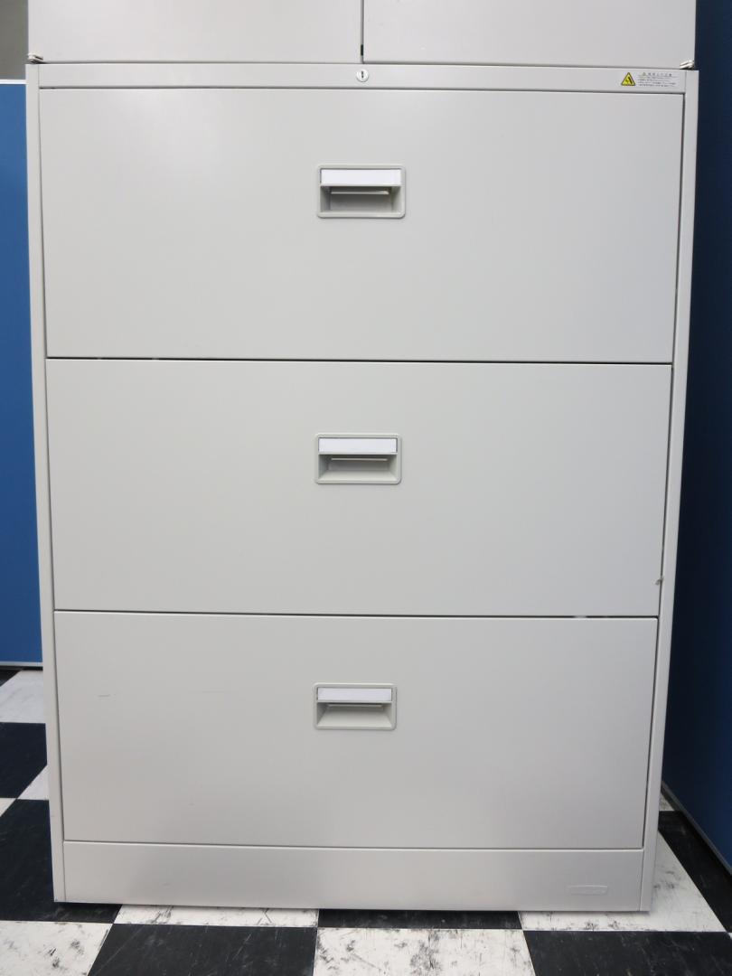【まとめて揃います!】使い勝手の良い3枚引き違い書庫と3段ラテラルのセット!オカムラ/42シリーズ/ニューグレー/シリンダー錠【TH】【倉庫在庫品】