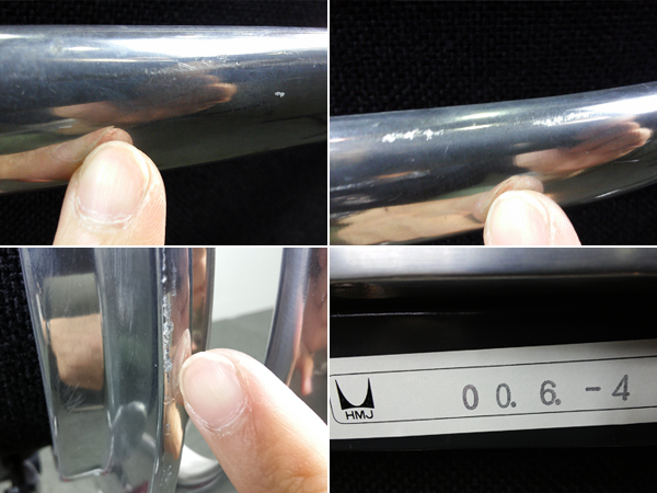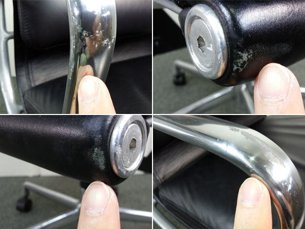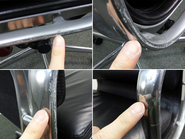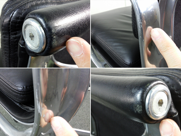 - 目立つ箇所あり傷・破れ・ほつれ・へたり・しわが多数または深い傷・破れ・ほつれ・へたり・しわが一部ある。※座面・背もたれ、シェル、脚部等にある。