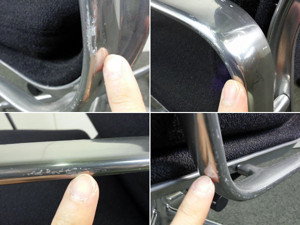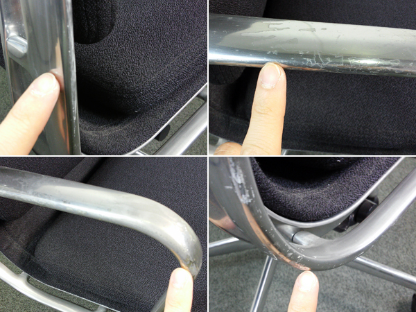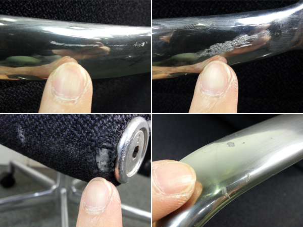 - 目立つ箇所あり傷・破れ・ほつれ・へたり・しわが多数または深い傷・破れ・ほつれ・へたり・しわが一部ある。※座面・背もたれ、シェル、脚部等にある。