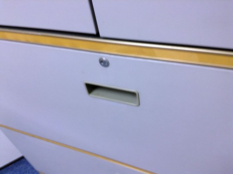 - 一部不具合ありそ引出の開閉不可、施錠不可、棚板無しといったの書庫の本来の効用を果たすための機能以外の一部が使用不可(例、扉、引出の開閉がしづらいなどがある。 )