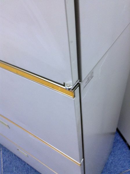 - 多数不具合あり引出の開閉不可、施錠不可、棚板無しといったその書庫の本来の効用を果たすための機能以外の多数が使用不可(例、扉、引出の開閉がしづらいなどがある。 )