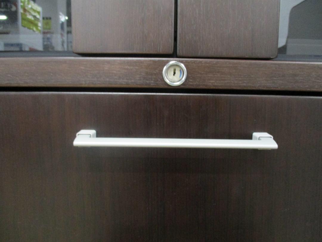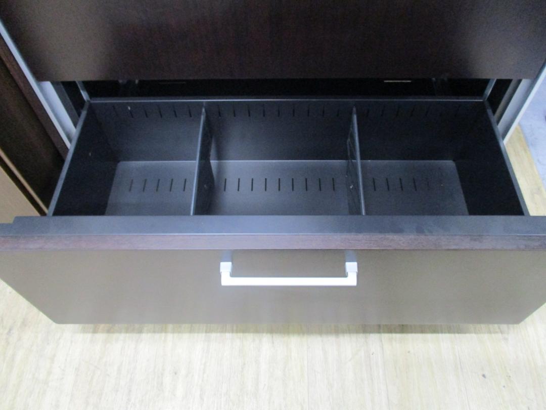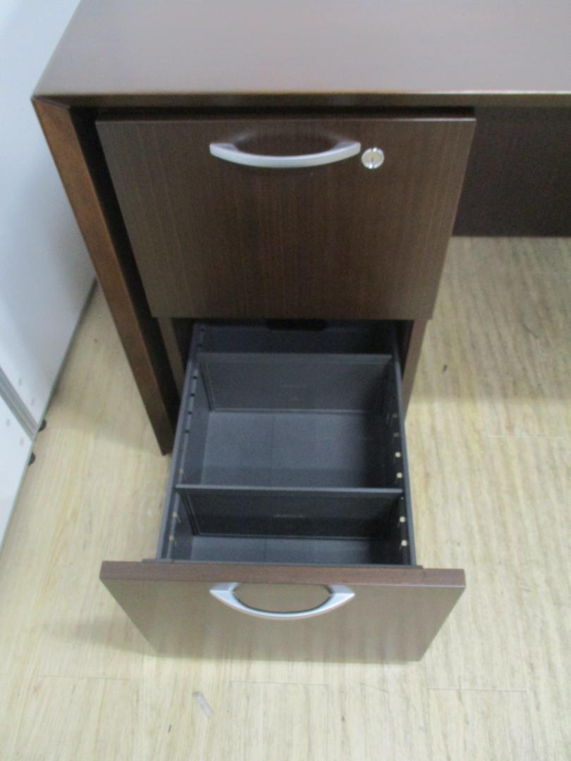 上段は左袖がA4専用ファイル引出し、右袖が3段のペントレー付きです。