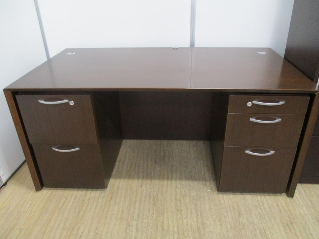 デスクはオカムラ製EX-35シリーズのダークブラウン!