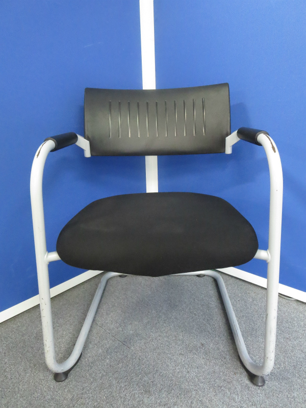 【おつとめ品!】■ミーティングチェア 肘付 ブラック ■Dauphin(ドーファン)製・スタッキングチェア【中古オフィス家具】- 川崎店