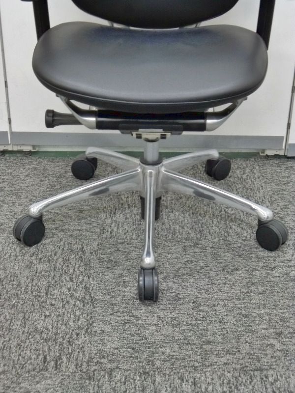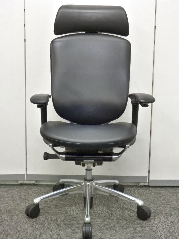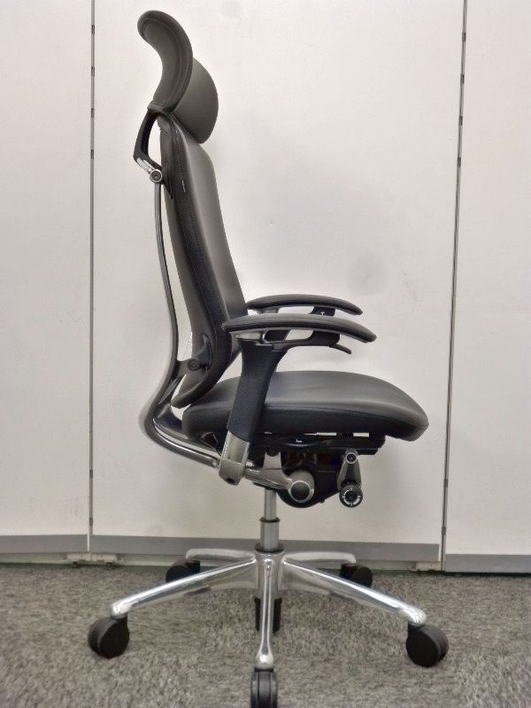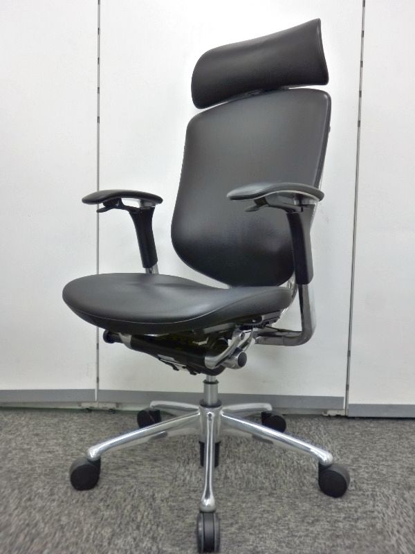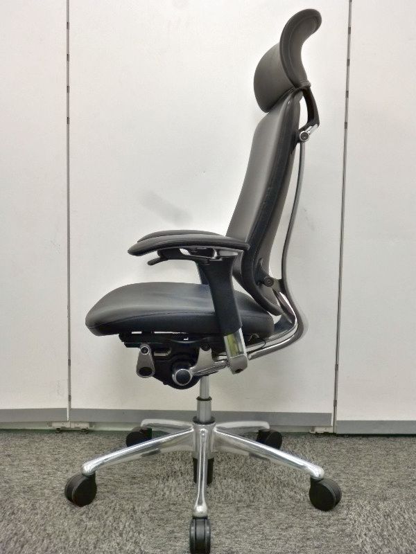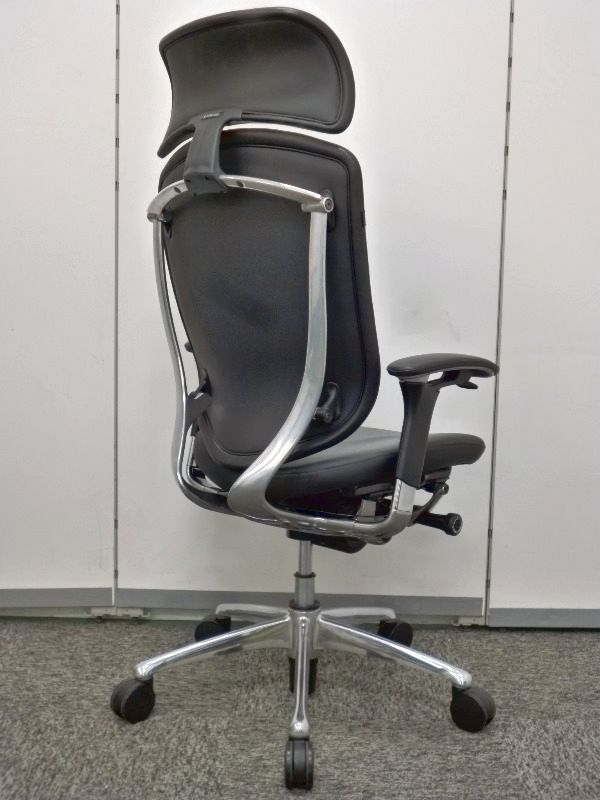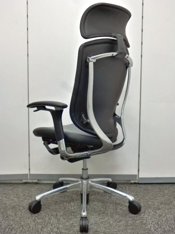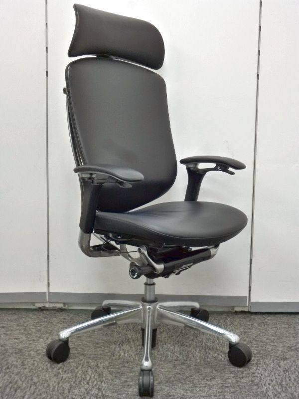 オカムラ製 コンテッサ レザー ブラック 肘付 ヘッドレスト付