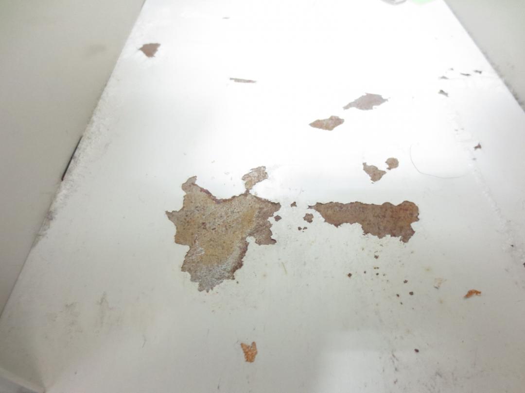 - かなり強い黄ばみ・変色が商品全体にある。(例、天板、正面、背部、サイド部分にある。)