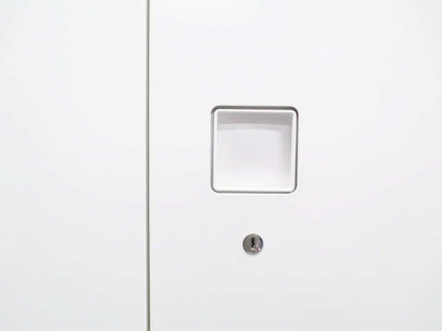 【オフィスの書類をスッキリ整理!取っ手がどの方向からでも開くマルチハンドル!】■オカムラ(okamura)製 レクトラインシリーズ 両開き書庫 ローキャビネット ■本体色:ホワイト ■シリンダー錠 ■ナチュラル天板付き