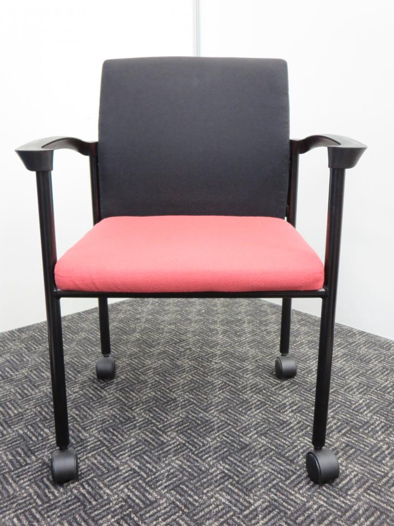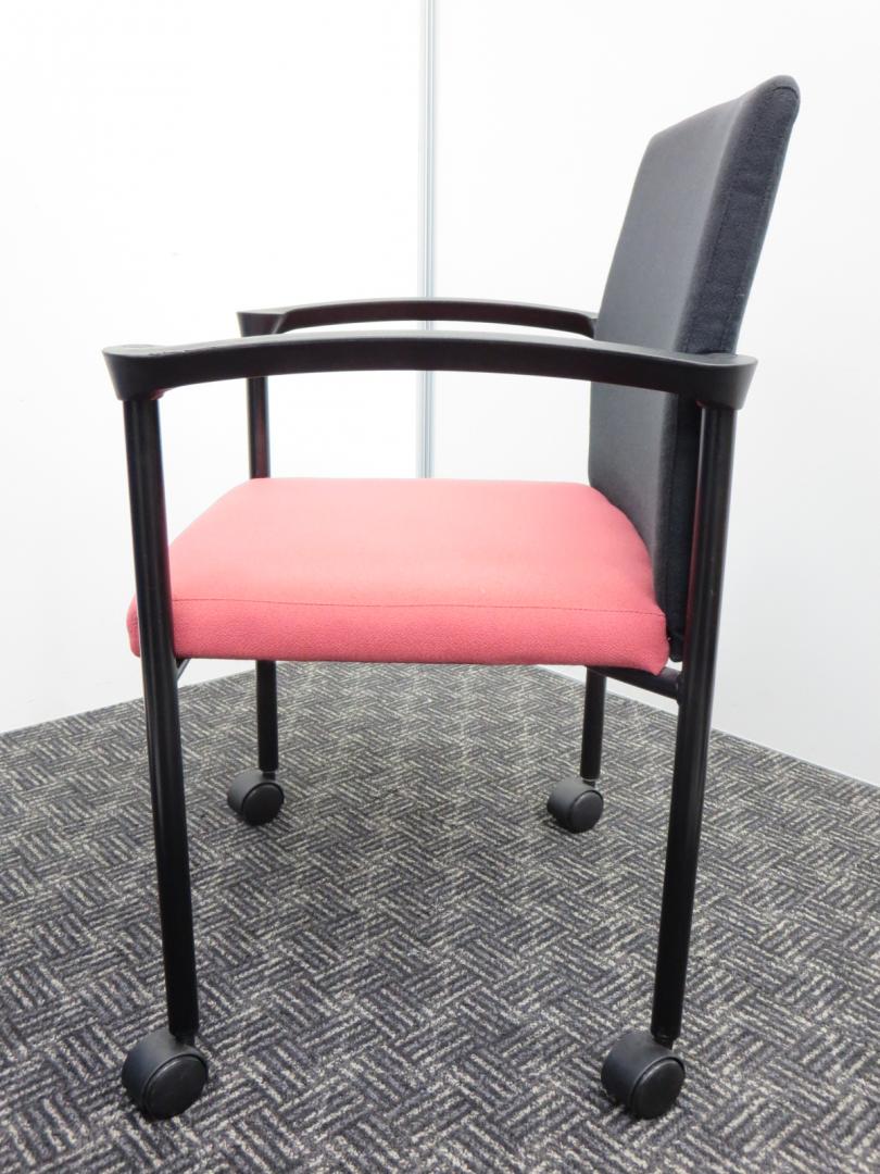 オシャレ!4脚セット! 会議に接客にと活躍の場が多いチェア キャスター付き 落ち着いた色味のレッド- 埼玉本店