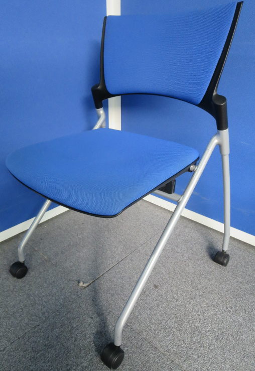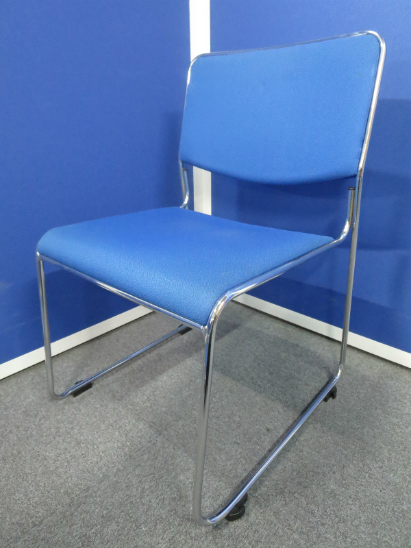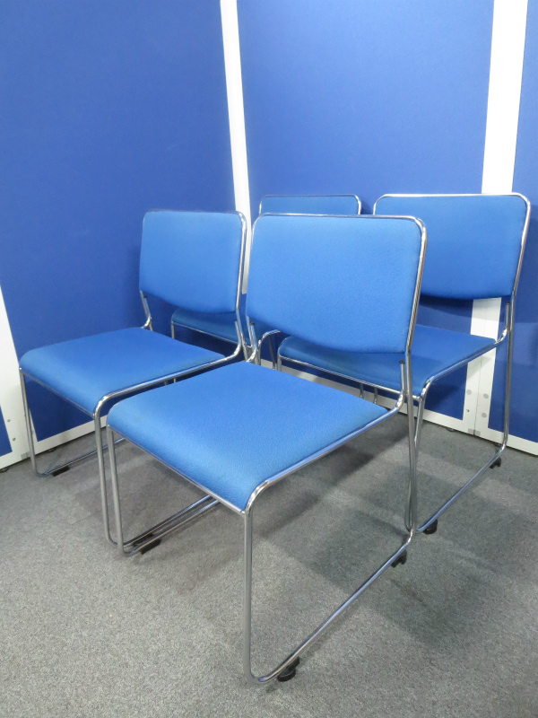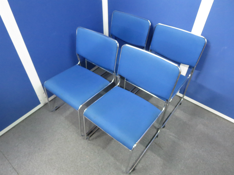鮮やかなブルーのミーティングチェア4脚セットです。