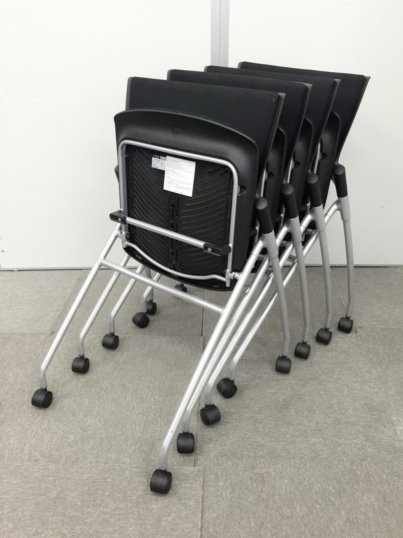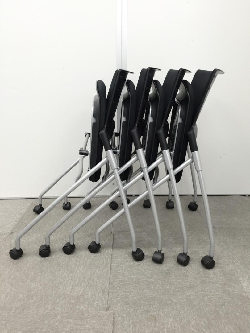 【4脚セット・状態良好】横に並べることが出来るネスティングチェアがセットで!キャスター付きなので、収納もラクラクです!【美品】【会議用チェア】【ミーティングチェア】- 在庫数