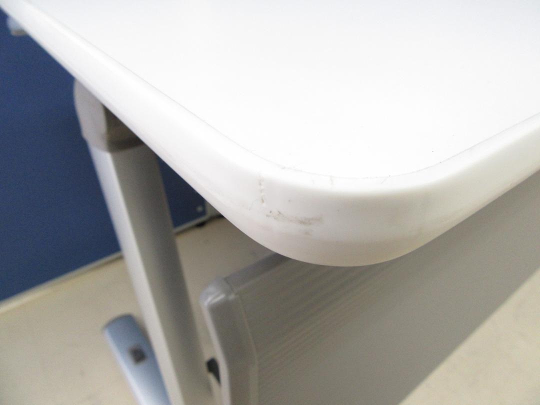 - 一部不具合あり天板歪み、アジャスター無し、キャスター使用不可ようなそのテーブルの本来の効用を果たすための機能以外の一部が使用不可な状態。(例、キャスターロッ ク機能使用不可、棚板無し等がある。)