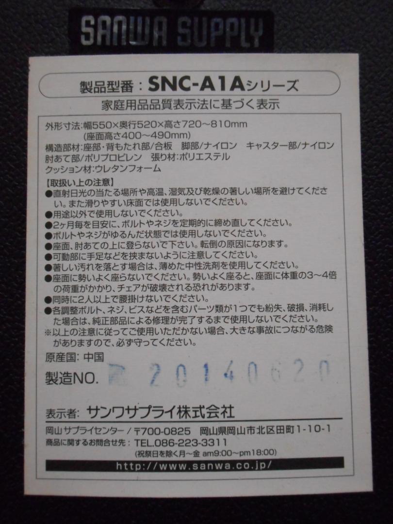 【中古】 SNC-A1ABK 肘付ローバックチェア 166015