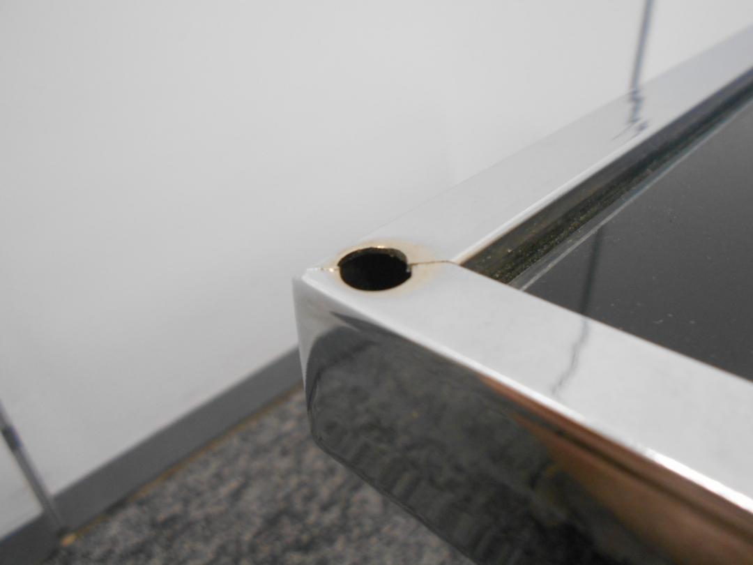 - 壊れている天板歪み、アジャスター無し、キャスター使用不可のようにそのテーブルの本来の効用を果たすための機能に不具合がある。