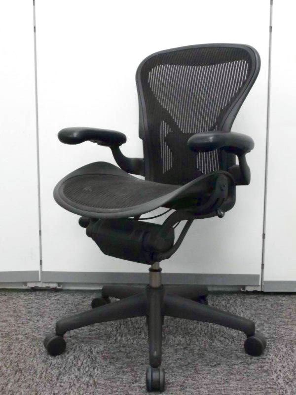 【★状態イマイチのためお安く!】■ハーマンミラー製 アーロンチェア Bサイズ 固定肘 ※キズあり・ランバーサポート無・昇降ガス圧弱めのためお安く!【訳あり特価品】