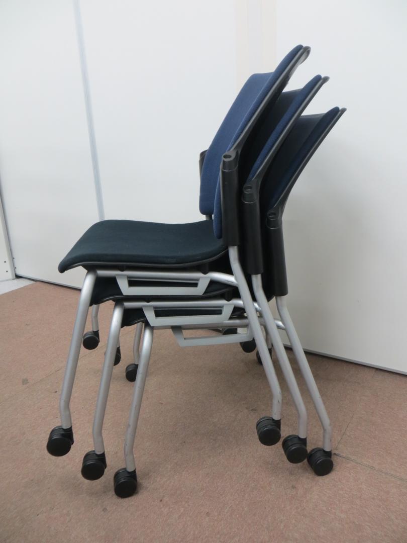 【3脚セット】渋いダークブルー×ブラックのスタッキングチェアセット!【中古オフィス家具】- 在庫数