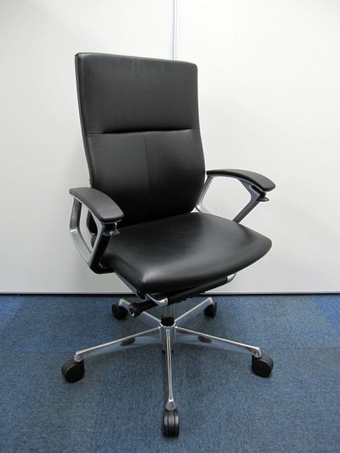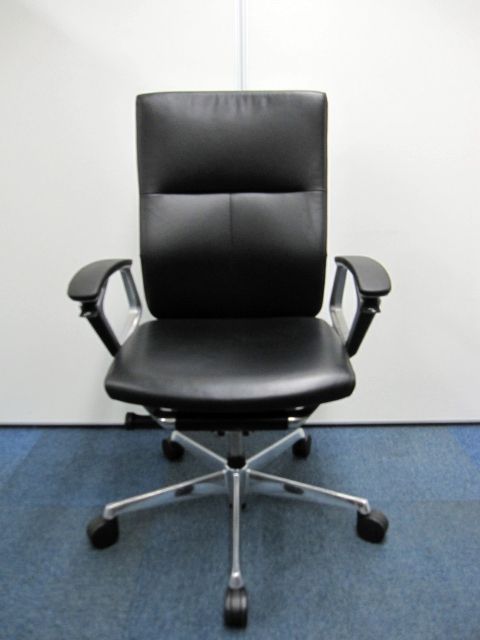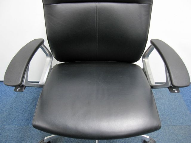 【滑らかで高級感あふれる座り心地が大人気!!】■オカムラ(okamura)製 デュークチェア(DUKE) ハイバック肘付き ■レザー張地 ■固定肘 ■ブラック【弊社使用欄:A01037767】