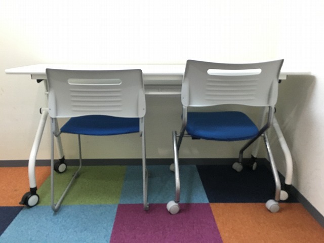 チェアはデスクの上や中に入れて保管しております。もちろん試座も可能ですので、お気軽にお申し付けください!