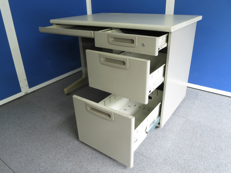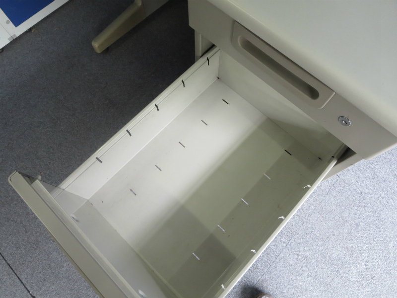 広々とした倉庫スペースに豊富な在庫がございます。オフィス家具が中古で一式そろいます!