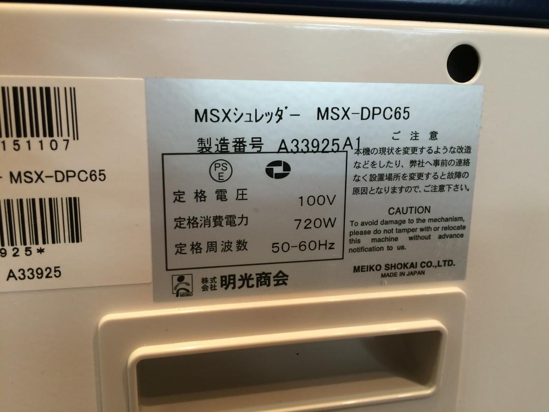 【中古】 MSX-DPC65 明光商会 シュレッダー 166620