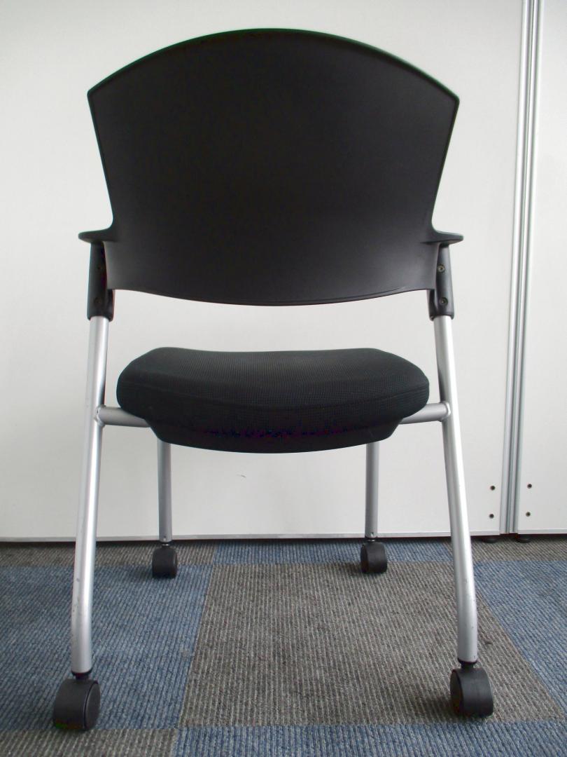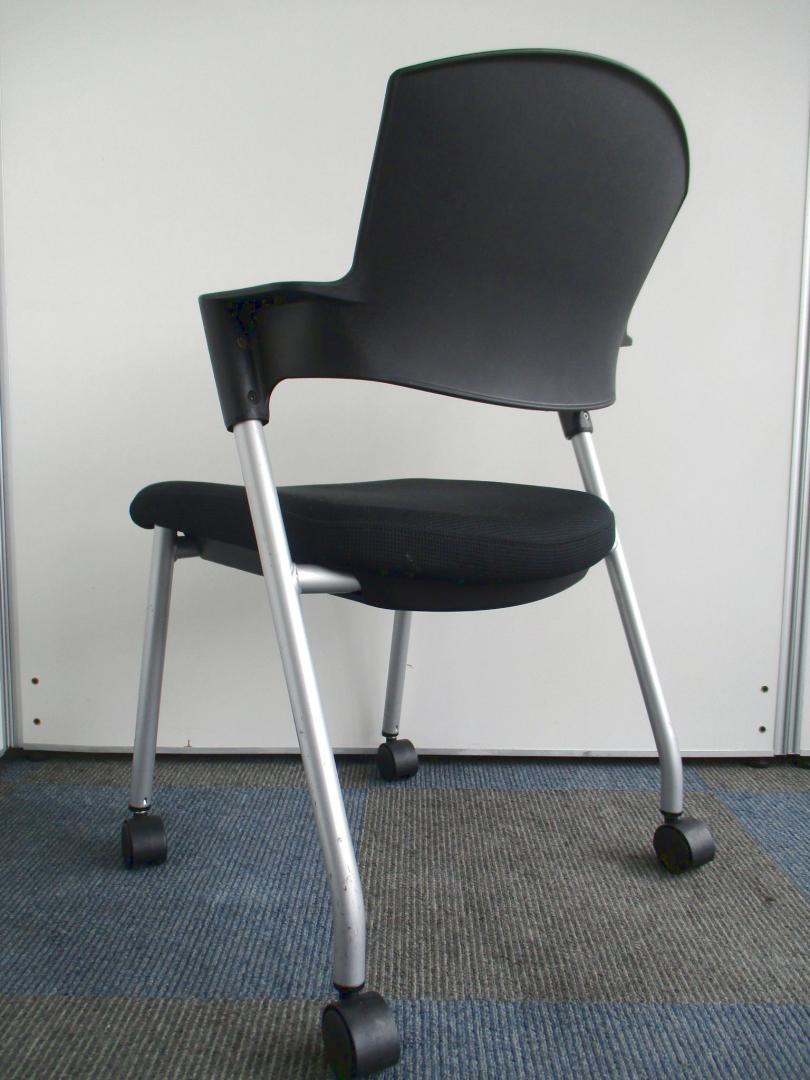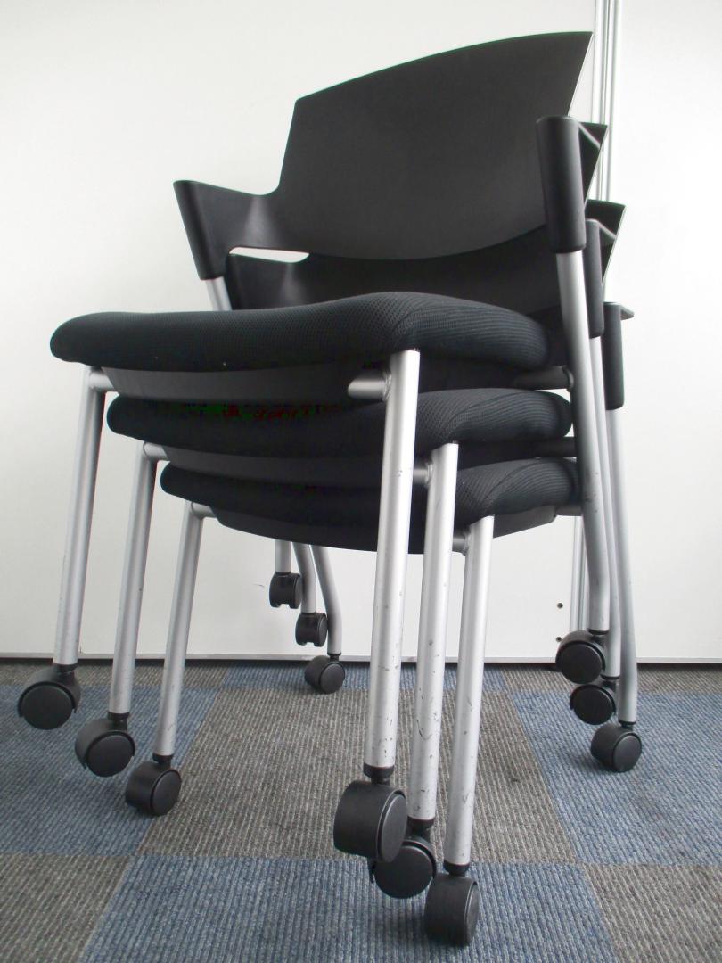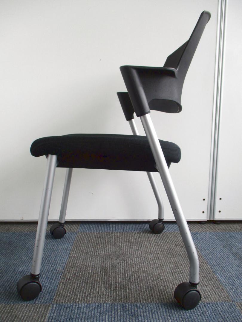 【シンプルスマートなスタッキングチェア!分厚いクッションで長時間でも快適な座り心地!】■スタッキングチェア 肘付ミーティングチェア ■固定肘 ■キャスター付 ■ブラック ■背面樹脂/コクヨ(KOKUYO/プロッティ