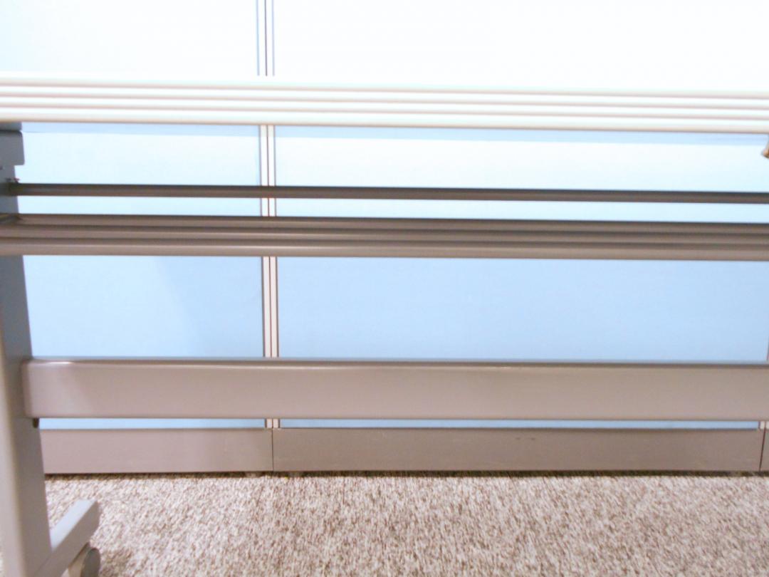 - 一部不具合あり天板歪み、アジャスター無し、キャスター使用不可ようなそのテーブルの本来の効用を果たすための機能以外の一部が使用不可な状態。(例、キャスターロッ ク機能使用不可、棚板無し等がある。)