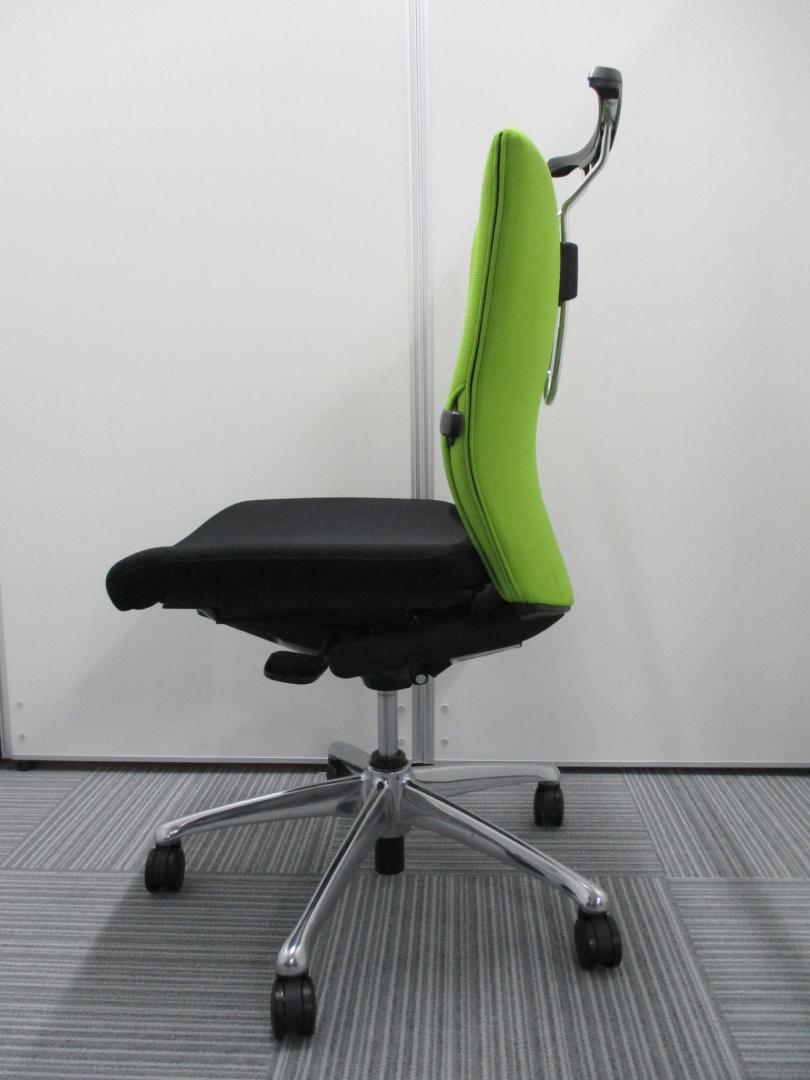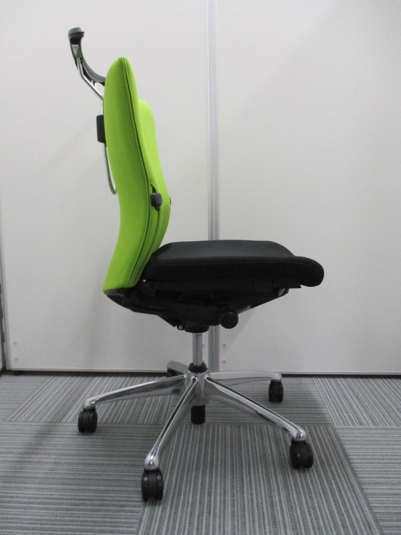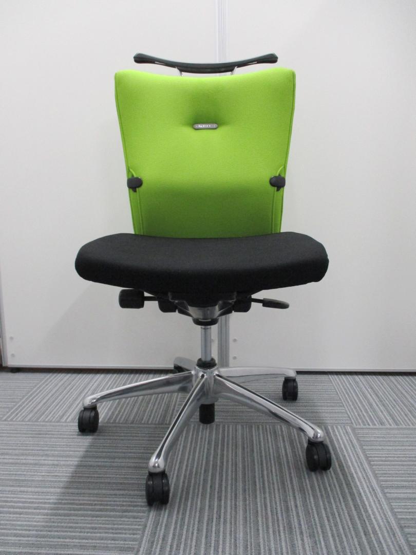 オカムラ製 フィーゴ シームレスタイプ ブラック×ライトグリーン【機能とデザインを兼ね備えたチェア】肘外し