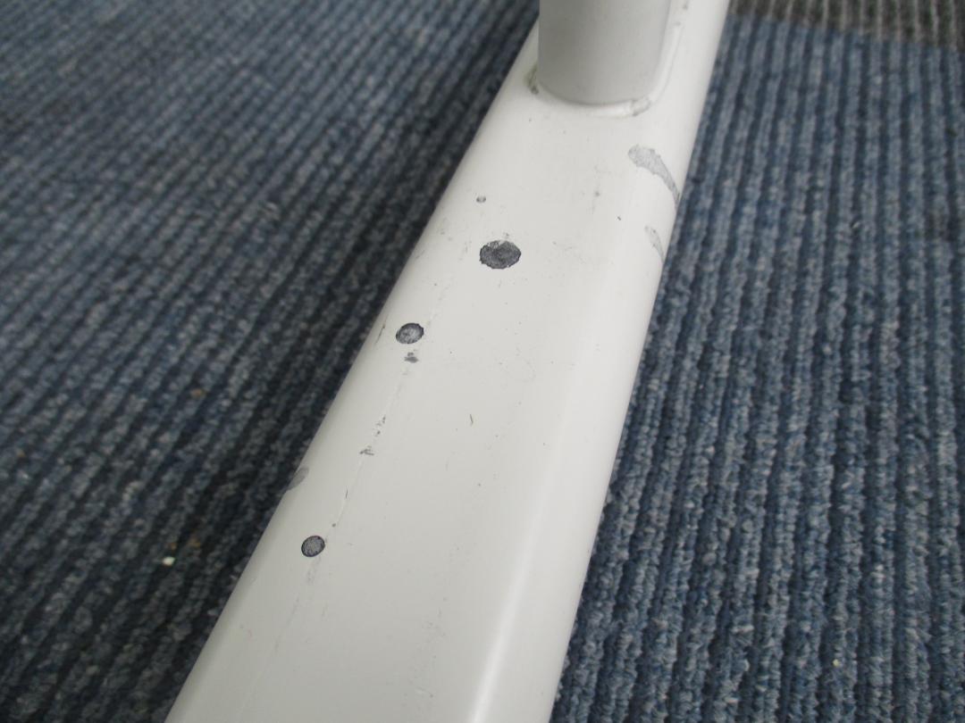 - 目立つ箇所あり傷・凹みが多数、深い傷・凹みが一部ある。(例、板面、受け、サイド部分、脚部にある。)